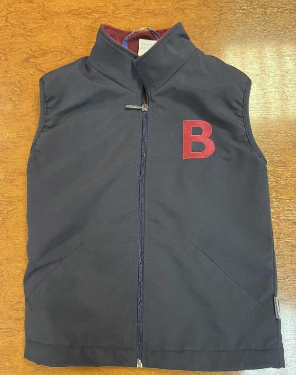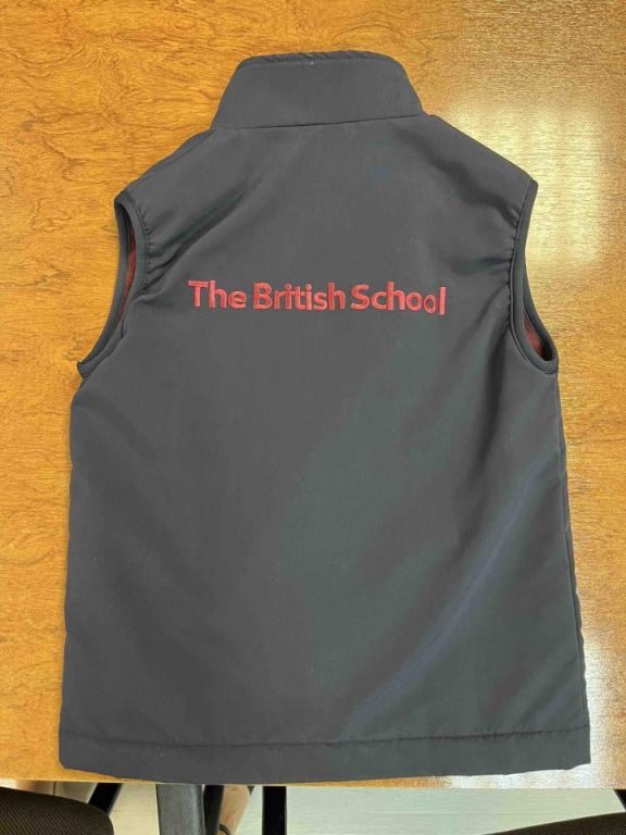 Chaleco de invierno con los colores del colegio Británico de Aragón. Fácil de limpiar y resistente. Colores rojos y azul marino. 90% POLIESTER 10% POLIURETANO